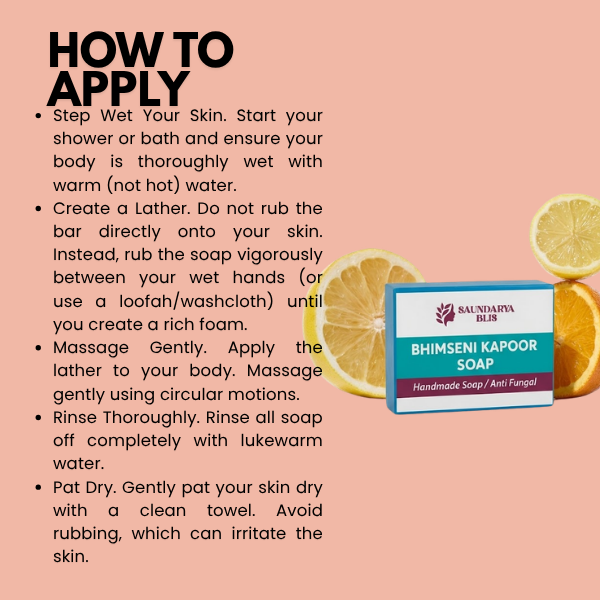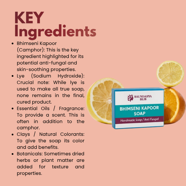 Experience the powerful purifying benefits of Bhimsani Kapoor Soap, specially formulated to help combat fungal infections, body odor, and skin irritation. Infused with pure Bhimseni camphor, known for its natural anti-fungal and antibacterial properties, this soap deeply cleanses the skin while maintaining its natural moisture balance.