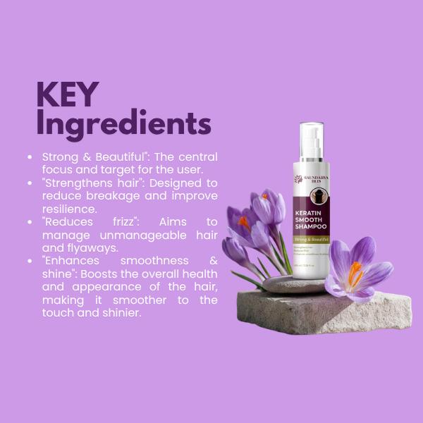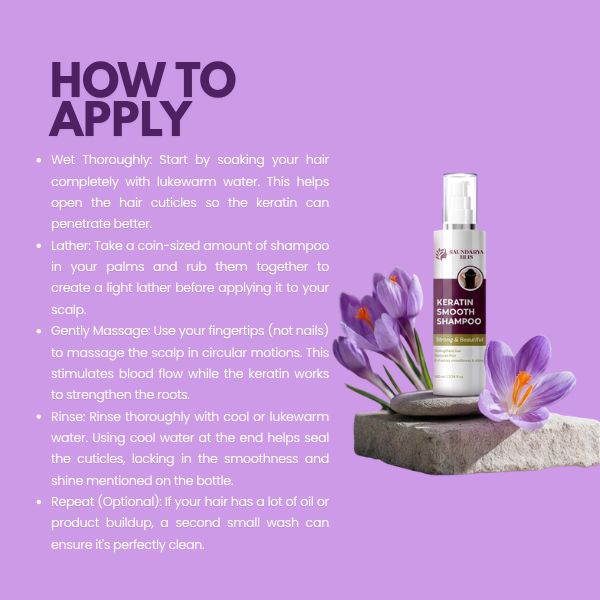 Unlock the secret to frizz-free, silky hair with Saundarya Blis Keratin Smooth Shampoo. Enriched with keratin proteins, it strengthens, smooths, and adds natural shine, leaving hair looking strong, smooth, and beautiful every day.